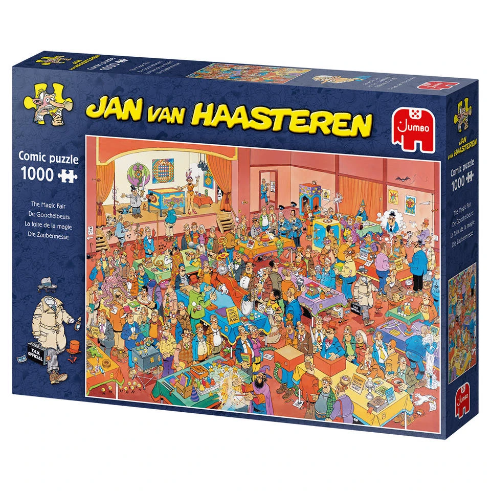 - Ontdek de bizarre situaties die ontstaan zijn in deze Jan van Haasteren de Goochelbeurs puzzel.