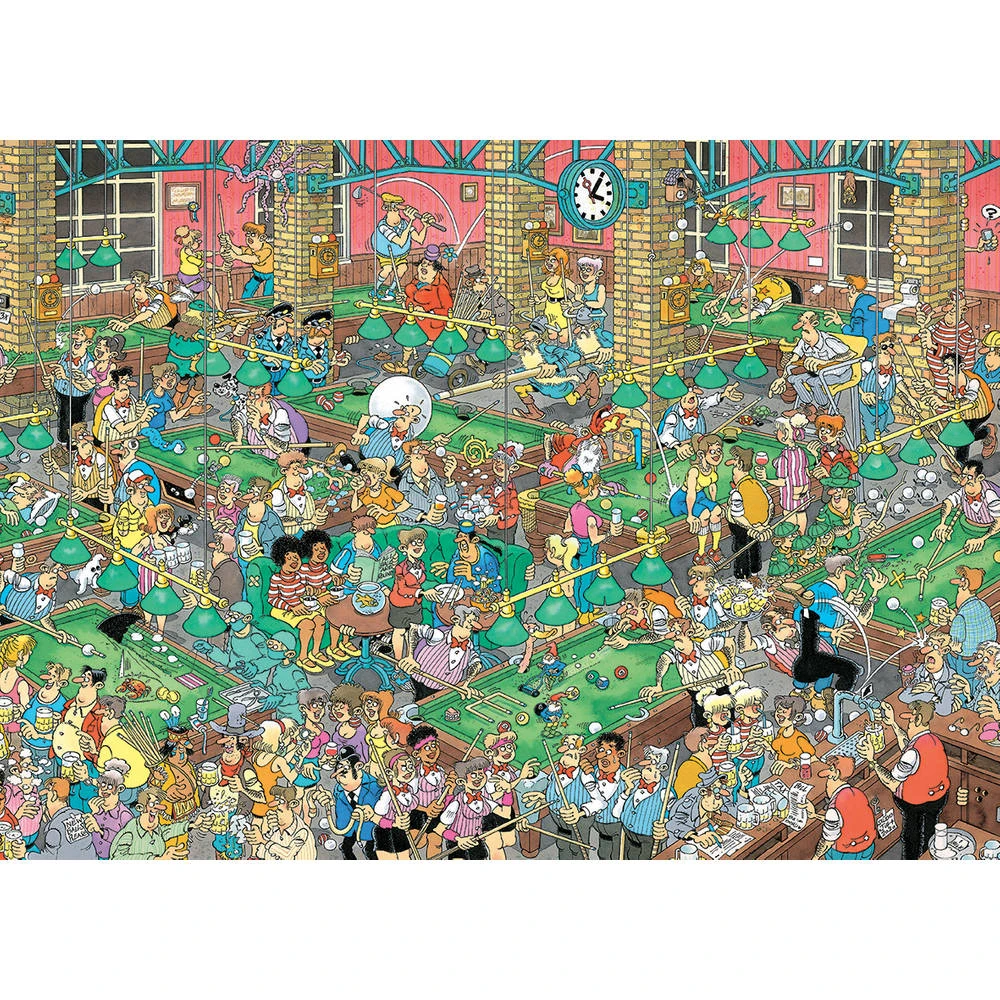 Voor een middagje vermaak is de Jan van Haasteren familie dit keer te vinden in een poolbar. In deze chaotische bar zul je aan een goed potje poolen helaas niet toe komen, maar om lachend een puzzel te maken zit je precies goed!
