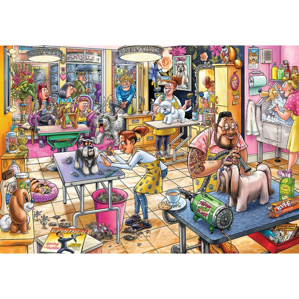 Houd je van puzzels en mysteries? Dan is de Jumbo Wasgij puzzel Mystery 23 de ideale uitdaging voor jou. Deze puzzel laat viervoeters zien die een beetje verwennerij nodig hebben. In de Pooch Parlour worden de knuffelige hoektanden in alle soorten en maten verzorgd. Maar je weet van tevoren niet of de sereniteit zal voortduren of dat een opgewonden klant op het punt staat om iedereen gek te maken! Met deze bijzondere Wasgij Mystery puzzel puzzel je namelijk niet wat je ziet maar er gaat gebeuren in de toekomst.