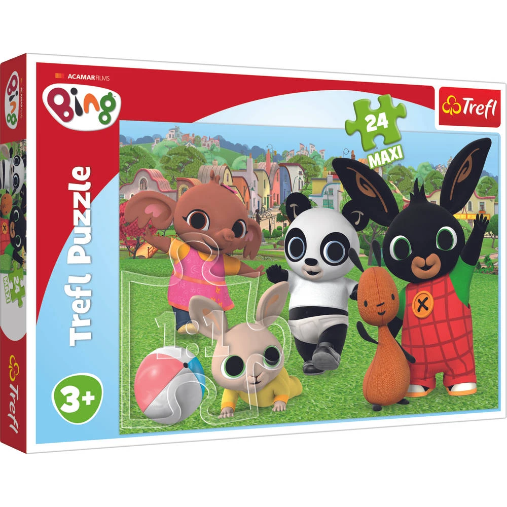 Leren puzzelen wordt met deze schattige Bing puzzel nog leuker! De set bestaat uit 24 grote puzzelstukken die samen een prachtig plaatje vormen. Op de puzzel zie je Bing en zān vriendjes lekker spelen in het park.