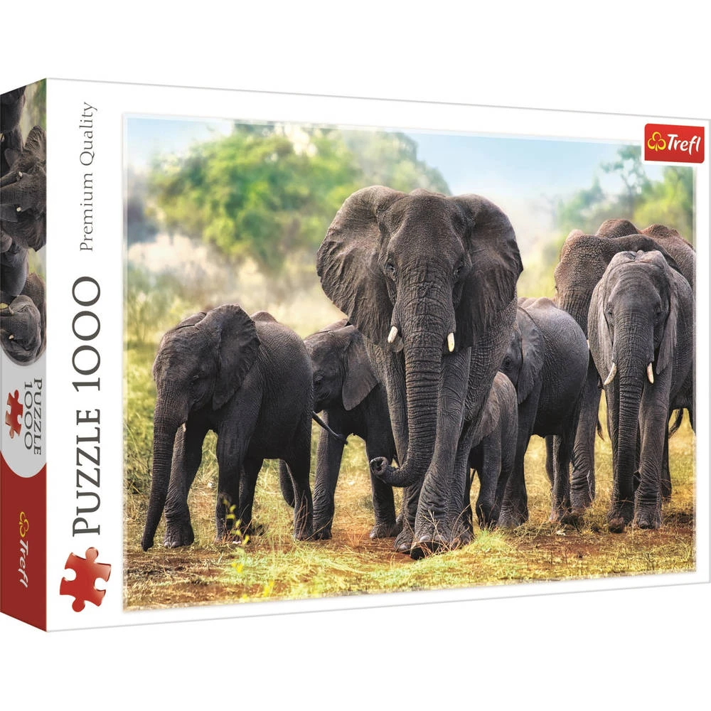 Maak deze Trefl puzzel af en ontdek een afbeelding met Afrikaanse olifanten. De puzzel bestaat uit 1000 puzzelstukjes.